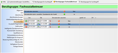 Die Bonusstunden der FSB (Fachsozialbetreuer) müssen auf der Berufsgruppe deaktiviert werden, um zu verhindern, dass FSB Bonusstunden und das Wochenvierzigstel erhalten.
