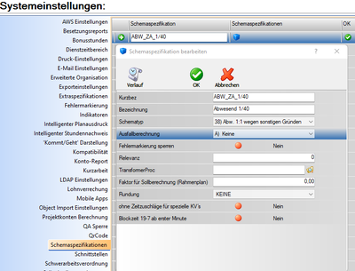 Um die Berechnung dieses Zeitbonus auszulösen, ist daher entweder das Kundenmodul Vierzigstel_Regelung_7Up oder Vierzigstel_Regelung und ein neu start des ALEX-Dienst notwendig.