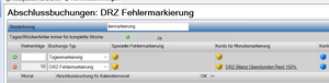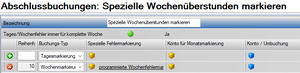 Die Spezielle Fehlermarkierung wird für jede Woche angewendet. Dabei wird geprüft, ob es in dieser Woche einen Fehler gibt, den die Fehlermarkierung beheben kann. Trifft dies zu wird die Fehlermarkierung angewendet. | Wochenfehlermarkierung gibt es nur durch kundenspezifische Plugins | Die Fehlermarkierung wird in der letzten Woche für die Rumpfwoche im aktuellen Monat aufgerufen. | |||||