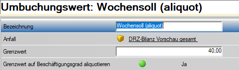 • Grenzwert auf Beschäftigungsgrad aliquotieren: wenn auf ja gesetzt, wird der Grenzwert für Teilzeit-Kräfte aliquotiert