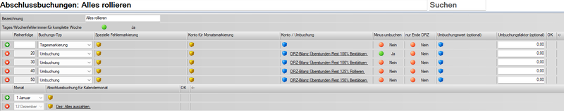 • Abschlussbuchungen: hier kann ein Set von Umbuchungen hinterlegt werden, welche in der definierten Reihenfolge ausgeführt werden