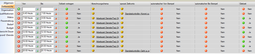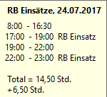 Hier wird alles VOR 07:00 und NACH 20:00 mit dem Planungscode markiert (erstes und letztes Gleitzeit-JA)