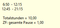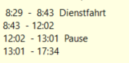 • Die gestempelte Pause wird NICHT angezeigt (erst nach geplantem Dienstende oder nach Stempelung "Ende Pause")