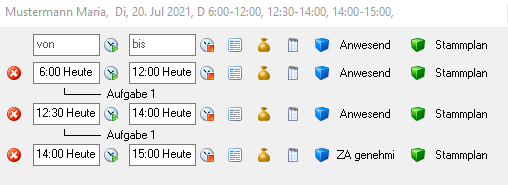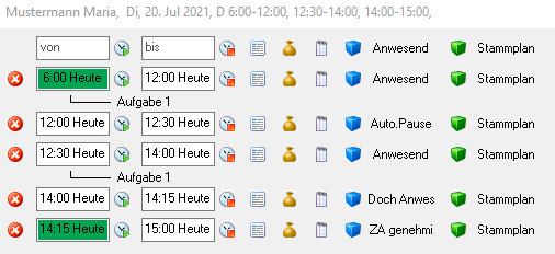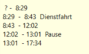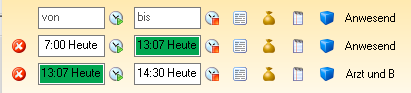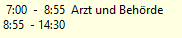 • 08:55 Planungscode "Komme von Arzt" --> Zeit von 7:00 bis 08:55 wird mit dem Planungscode "Arzt und Behörde" markiert