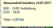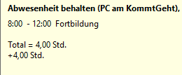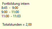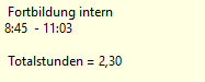 --> gesamte Zeit von 08:45 - 11:03 wird als interne Fortbildung berechnet
