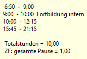 --> Definierte Zeit von 09:00 - 10:00 Interne Fortbildung bleibt erhalten: