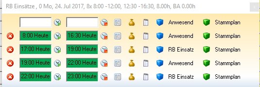 Hier wird bei einem geplanten Dienst zusätzlich eine spezielle Anwesenheit hinterlegt: