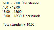• 18:30 Planungscode "Gehe Überstunde") --> Zeit von Dienstende (18:00) bis 18:30 wird mit diesem Planungscode markiert
