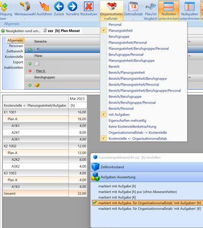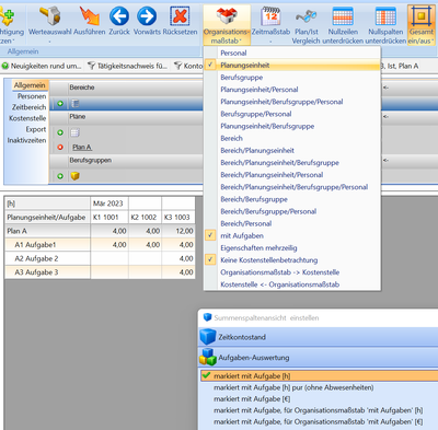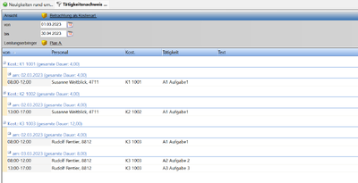 Bei Verwendung der Aufgaben als Kostenart, muss am Tätigkeitsnachweis die Kostenstelle zusätzlich zur Aufgabe ausgewiesen werden.