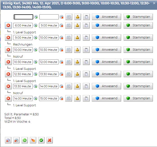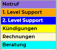 • spezielle Aufgaben (Notruf, 1. Level Support, 2. Level Support, etc.) mit
