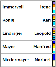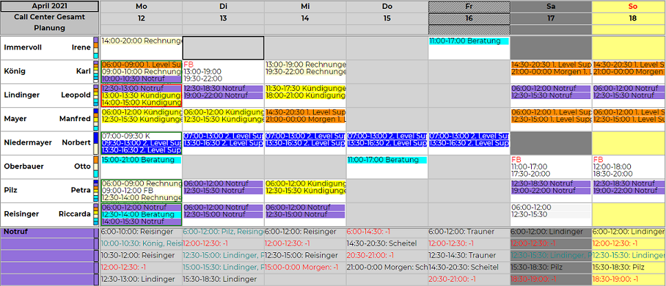 In den Stammdaten der Mitarbeiter sind ihre Qualifikationen hinterlegt, diese werden durch eine farbliche Markierung beim Mitarbeiternamen angezeigt.
