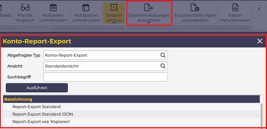 5. Exporteinstellungen auswählen (einen Konto-Report-Export hinterlegen):