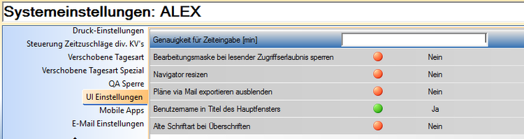 Um sich in der Titelleiste von ALEX den angemeldeten Benutzer anzeigen zu lassen, muss folgender Parameter in den Systemeinstellungen gesetzt werden: