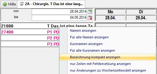 Es besteht nun die Möglichkeit durch einen Rechtsklick im Besetzungsreport, die Anzeige der Bezeichnung kompakter darstellen zu lassen.