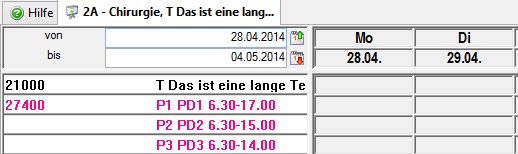 Bei der Auswertung von Diensten unterschiedlicher Planungseinheiten, wird insbesondere bei langen Stationsnamen die Anzeige der Bezeichnung abgeschnitten, so wie im folgenden Beispiel erkennbar: