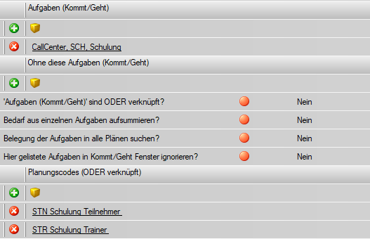 Sind bei mehreren Parametern Bedingungen ausgewählt (z.B. Berufsgruppe und Dienstgruppe), so sind dies immer UND - Bedingungen (außer es ist explizit anders gekennzeichnet).