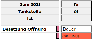 Mitarbeiter Bauer arbeitet von 06:15 - 14:15