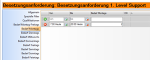 Bei der Besetzungsanforderung ist von Mo-Fr folgender Bedarf hinterlegt: 07:00 - 20:00 -> 2