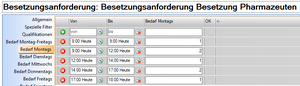 • Es wird der Bedarf in der Besetzungsanforderung für die jeweilige Zeitspanne definiert, die geprüft werden soll