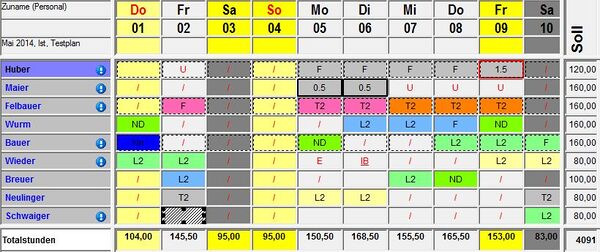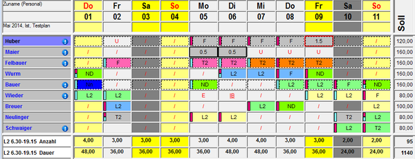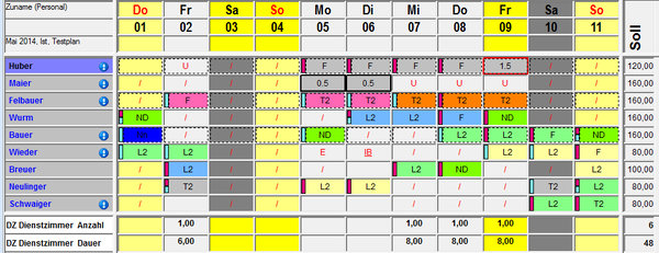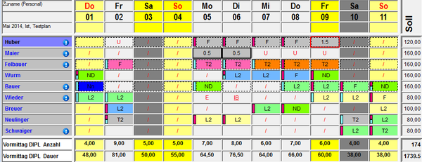 Anschließend erscheint als letzter Mitarbeiter der "Budget-Mitarbeiter" am Dienstplan.
