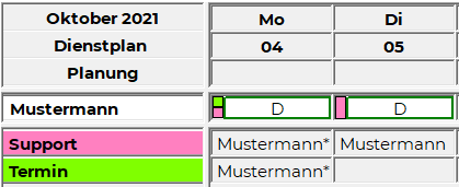 Hat ein Mitarbeiter an einem Tag mehr als eine Aufgabe zugeteilt, so wird neben seinem Namen im Besetzungsreport nun ein * angezeigt. Die Kennzeichnung ist nur dann, wenn "Namen anzeigen" ausgewählt ist. Mehrfache Aufgaben