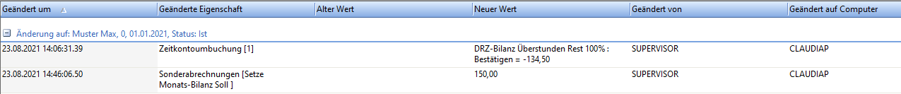 Protokollierung Umbuchungen