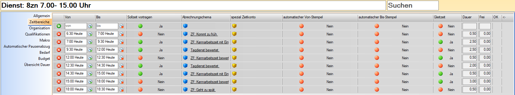 Bzw. hier ein Dienst, bei welchem es auch vorgetragene Zeiten gibt, welche Gleitzeit sind und nicht Kernarbeitszeit, in diesem Fall ist das Schema "ZF:Kannarbeitszeit mit Einsatz" zu verwenden.
