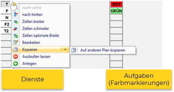 Bisher konnte man Dienste und Aufgaben nur über die Dienst-Suche bzw. über die Farbmarkierungs-Suche auf andere Pläne kopieren.