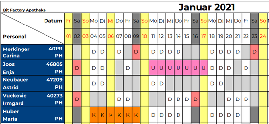 Beispiel: Ausdruck von "Urlaub" und "Krankenstand"