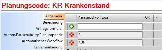 Beim Planungscode müssen die zugehörigen Kennzeichen von Elda hinterlegt werden.