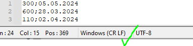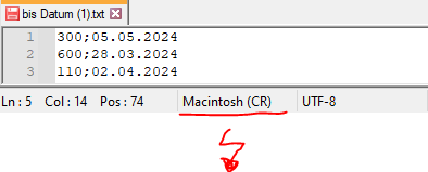 • Der EOL Typ der Datei muss Windows sein (siehe Kapitel "Bekannte Probleme" ganz unten)