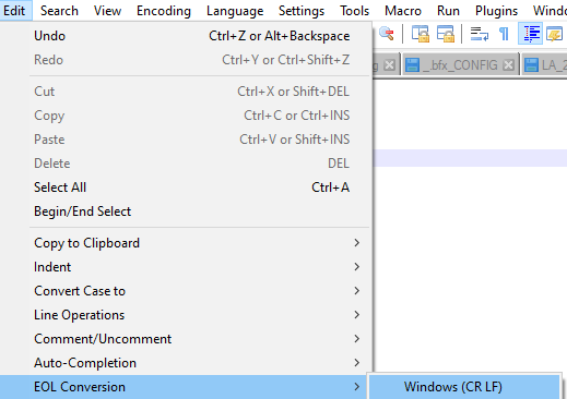 FALSCH: EOL-Conversion darf nicht Macintosh sein Korrekt: EOL-Conversion Windows