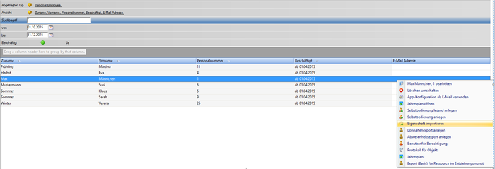 Beispiel: Nachnamen importieren: <Personalnummer>;<Nachname>;<Stichtag>