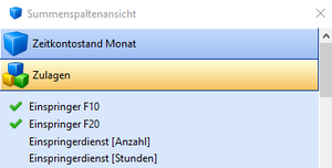 Pro Sonderabrechnung wird ein eigenes Konto (zu finden in Kontogruppe "Zulagen") befüllt, welches die Anzahl der Einträge je Mitarbeiter und Monat anzeigt.