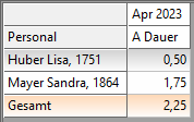 - die Anzahl der Tage, an denen der Planungscode eingetragen ist oder