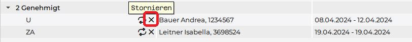 Ein Mitarbeiter kann eine Stornierung wiederum beantragen.