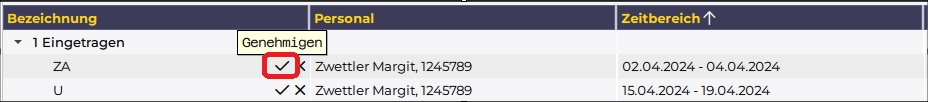 Im Fenster des Genehmigungsverfahrens können einzelne Zeitbereiche mit Klick auf "Genehmigen" genehmigt werden.