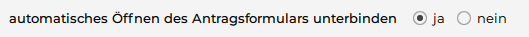 - Systemeinstellungen --> "Genehmigungsverfahren" --> Parameter "automatisches Öffnen des Antragsformulares unterbinden" auf JA gesetzt werden.