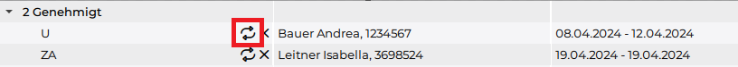 Das Ersetzen einzelner Tage wird durch die Funktion Genehmigung ändern ermöglicht.