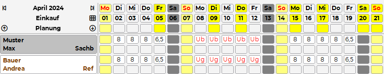 - ganztägig: Planungscode in der Legende aufnehmen und auf den entsprechenden Tag klicken