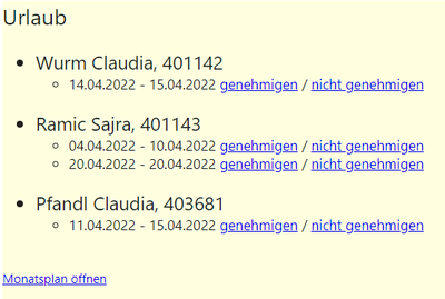 - Die Genehmigung des Urlaubs kann nur durch einen Privilegierten durchgeführt werden.