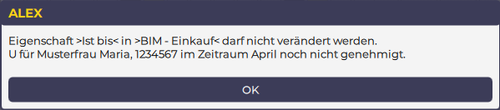 - Der Statuswechsel von "Planung" auf "Ist" oder von "Ist" auf "Abgeschlossen" kann nicht durchgeführt werden, wenn nicht genehmigte Urlaube vorhanden sind. Folgende Fehlermeldung erscheint: