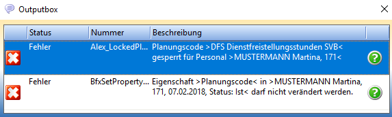 Wird bei einem Mitarbeiter ein gesperrter Planungscode über die Legende eingetragen, erscheint folgende Fehlermeldung: