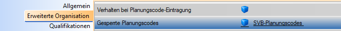 Die Sammlung der gesperrten Planungscodes kann unter "Erweiterte Organisation/Gesperrte Planungscodes" hinterlegt werden: