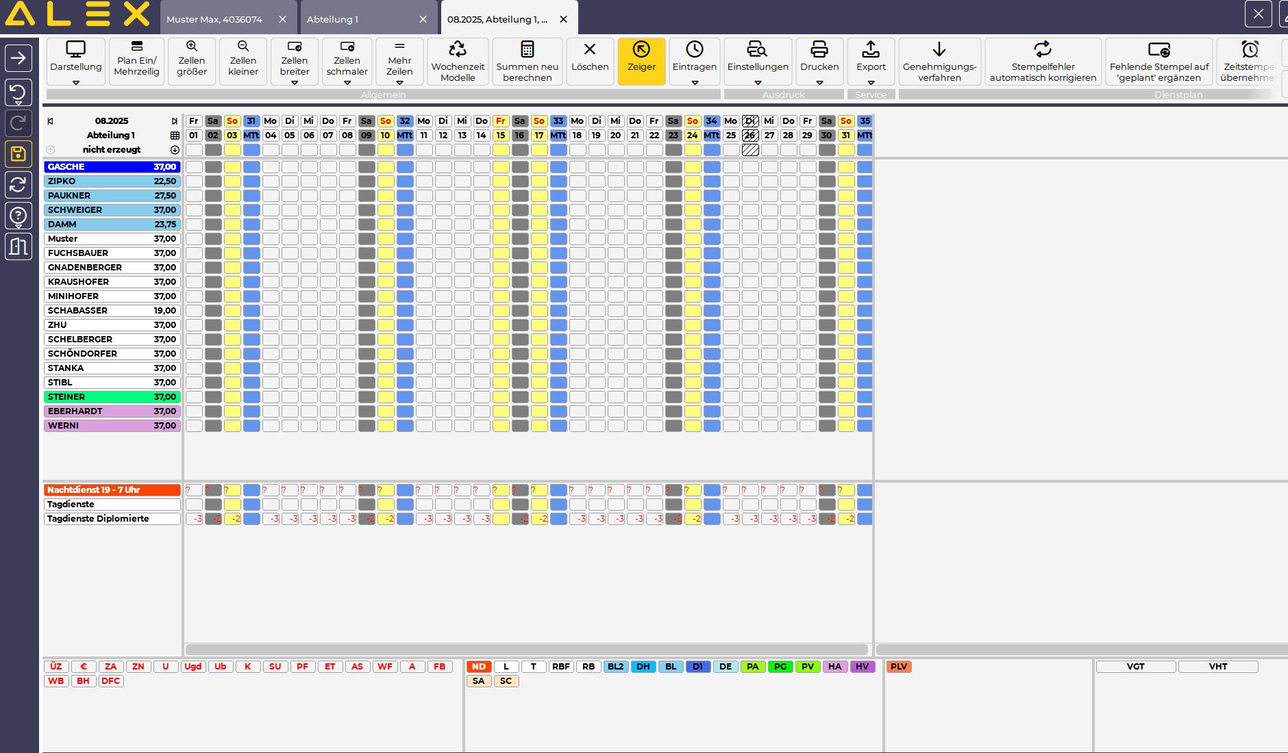 Die Basis-Funktionalitäten im Dienstplan (Bildschirmeinstellungen, Dienstplanung, etc.) finden Sie hier.