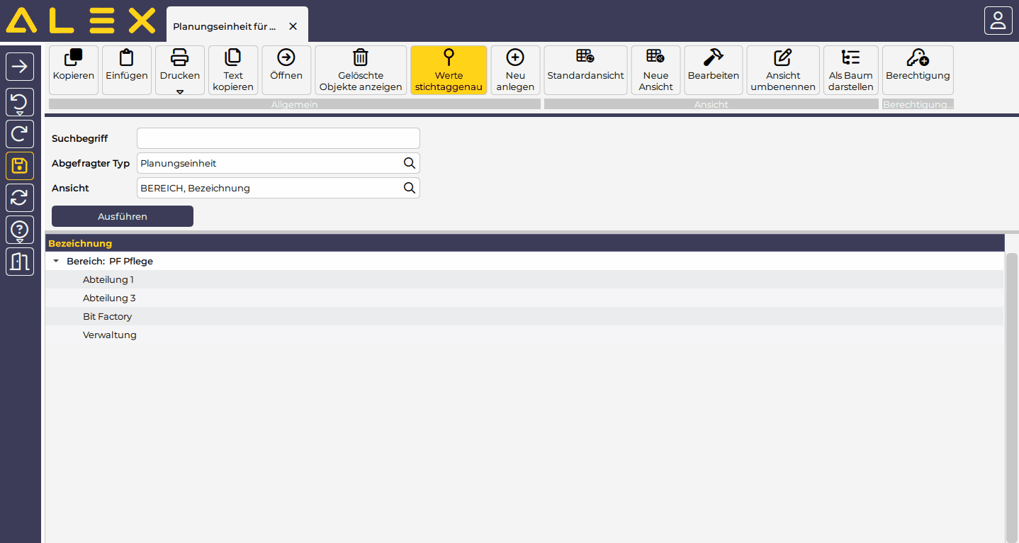 Planungseinheiten werden am einfachsten über den Navigatorpunkt "Planungseinheit" bearbeitet bzw. neu angelegt.