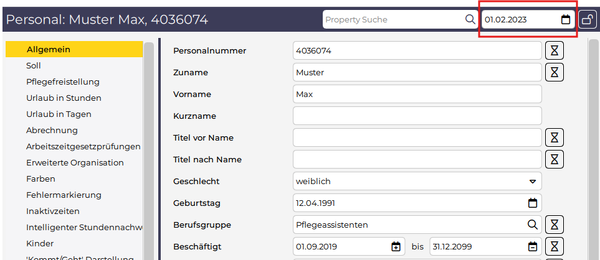 • Es öffnen sich die Personalstammdaten mit dem Stichtag des Dienstplans aus dem heraus die Stammdaten geöffnet wurden!