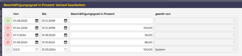 • Etwaige Ansprüche (z.B. Urlaub), Sollstunden etc. werden automatisch aliquotiert