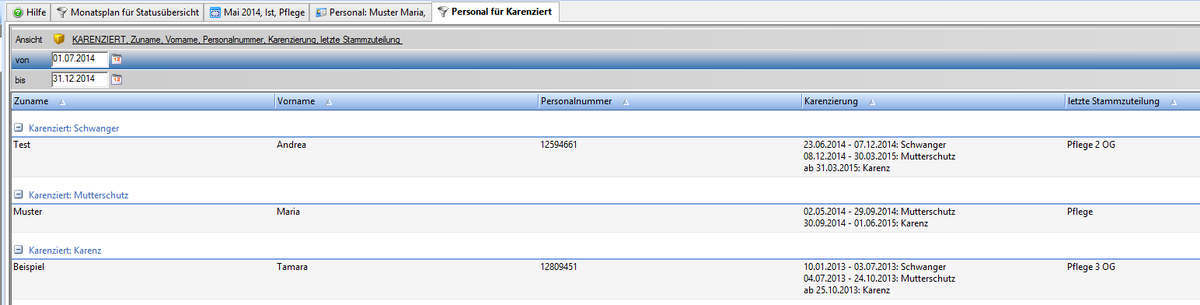 Personalsuche mit Filter "Karenziert"