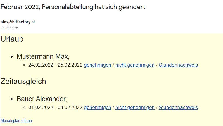 Im E-Mail des intelligenten Planausdruckes können nun auch Links auf den Stundennachweis des jeweiligen Mitarbeiters mitgeschickt werden.